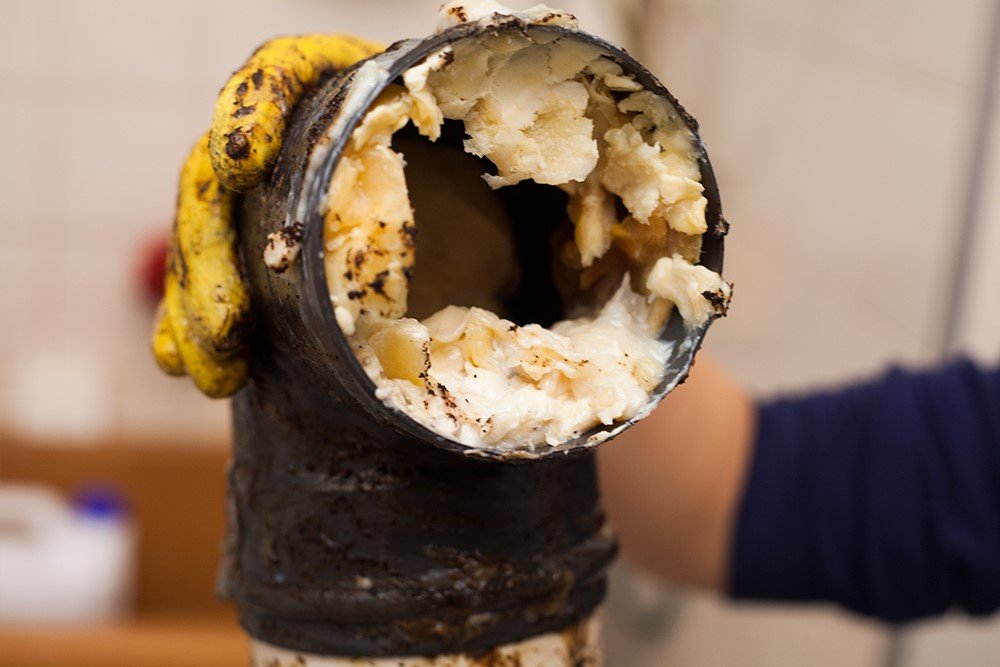 Papéis e objetos presos na tubulação criam barreiras que impedem a passagem da água.